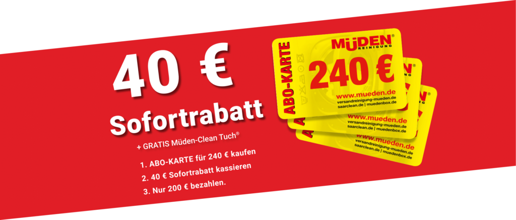 - zu jeder 200€-Aboaufladung erhalten Sie ein gratis Müden-CleanTuch® im Wert von € 9,90